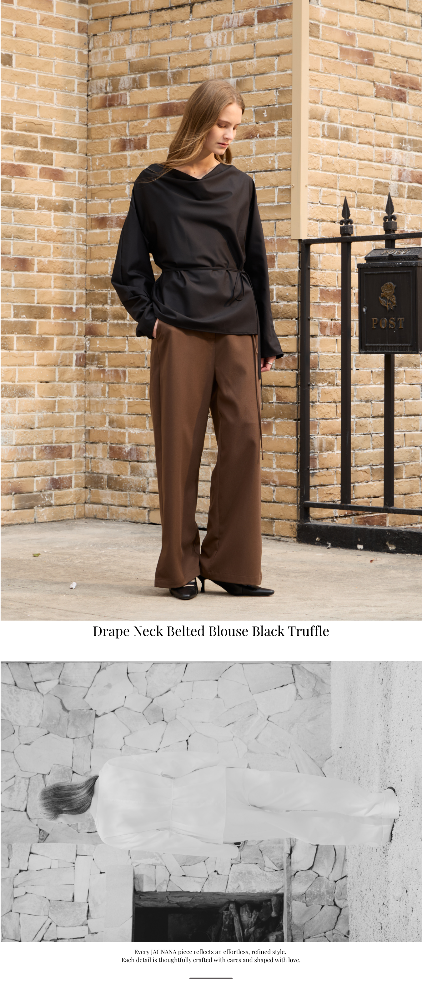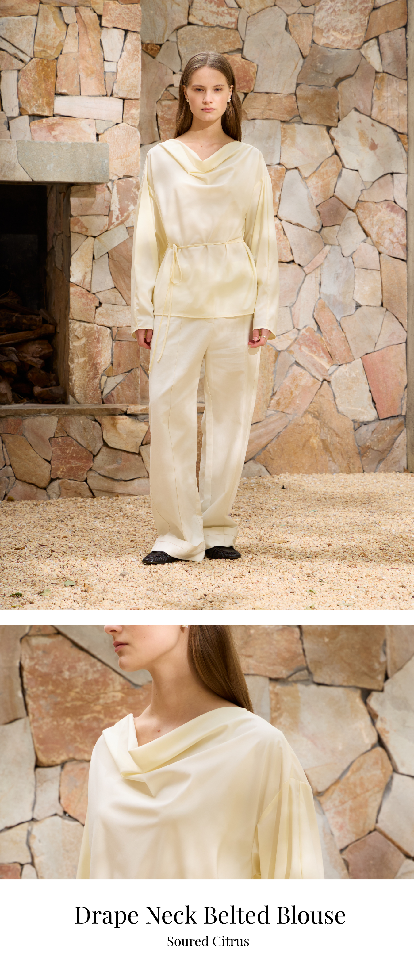 • 突破常規的垂褶蕩領,區別於傳統襯衫的拘謹,優雅修飾頸部線條。