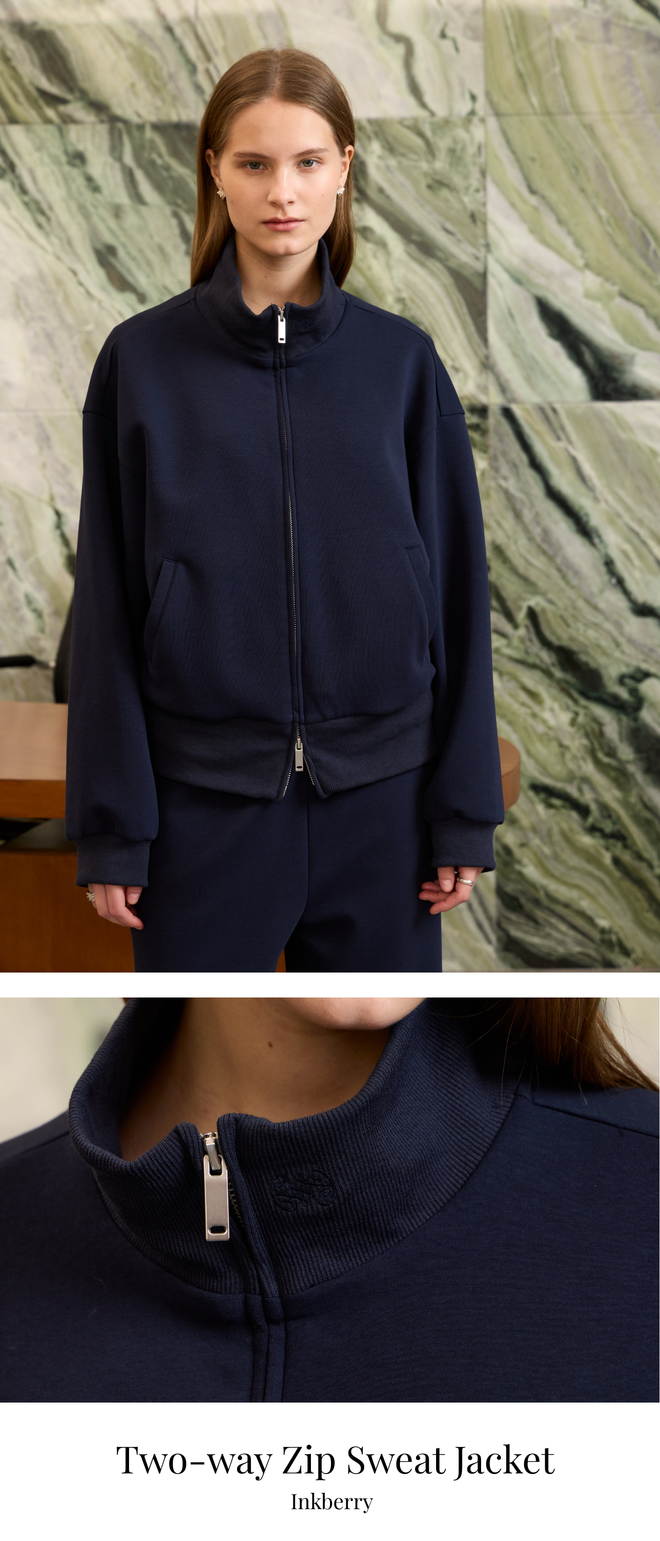 寬鬆版型,雙向拉鍊,側口袋,